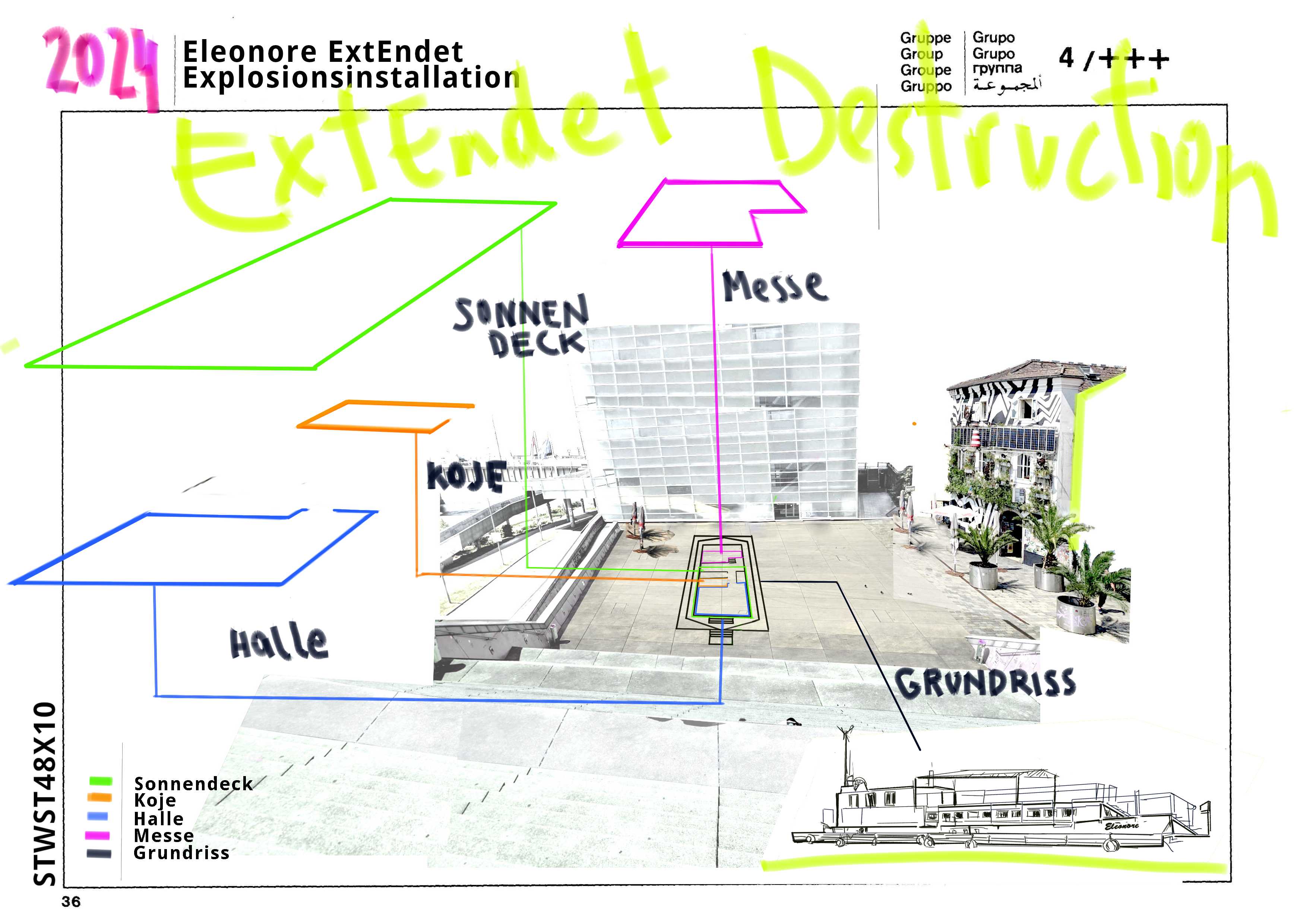 Den Abschied gebührend zelebrieren, eine extEndet Version of deconstruction… collaboration ahoi! Wir heben euch die Eleonore aus der Traun und legen sie als Explosionsinstallation am Maindeck vor der Stadtwerkstatt vor Anker! Ihr Innerstes nach außen gekehrt, nutzen wir die letzten 48 Stunden, um uns in der Schiffsmesse zu versammeln, durch den Bauch des Schiffes in die Halle oder eine der Kojen zu schlendern oder am Sonnendeck den Blick schweifen zu lassen.