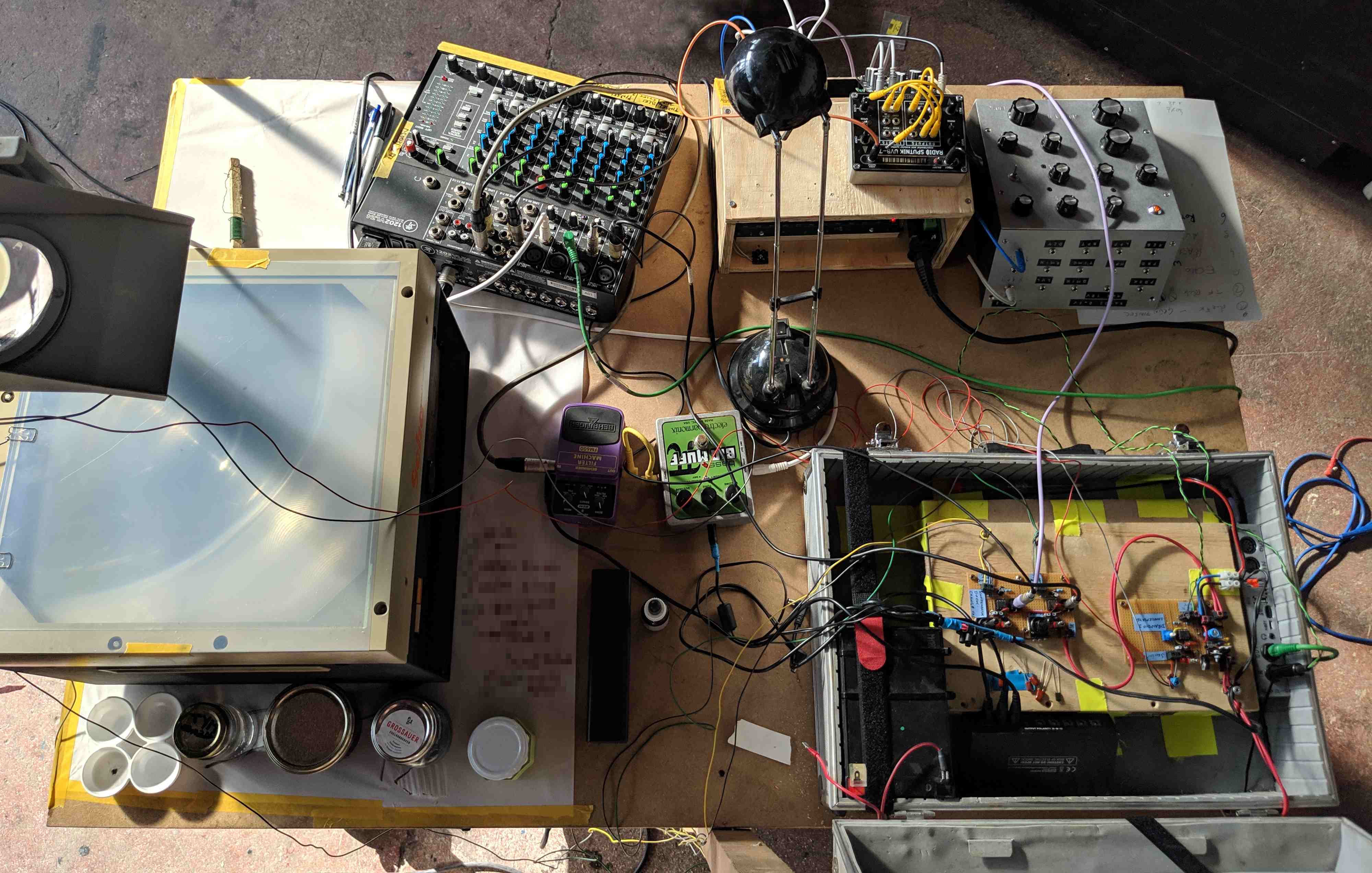 Auszüge aus den Arbeiten von Eva Grün sowie den „recording spaces“ von Mario Bergamasco, die im Rahmen ihrer Abrissresidency „extEndet ahoi“ entstanden sind, könnten gefunden werden: Teile der Postkartenserie „Return to Sender“, Schiffstagebücher oder der Pinseloszillator, ein work in progress von Eva Grün mit Marc9 und Taro Knopp. Daraus formiert sich Kontakt.