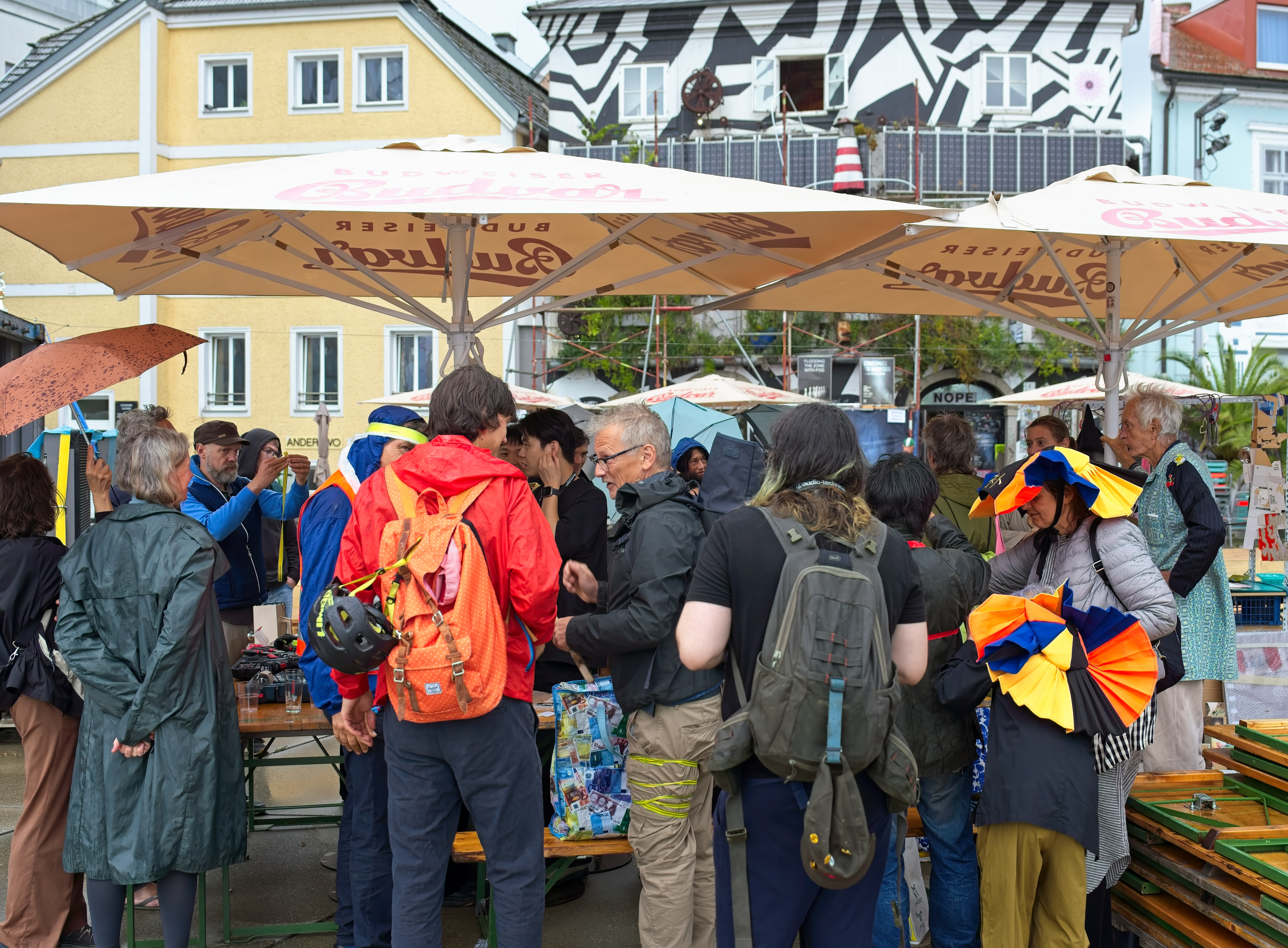 STWST84x11 beginnt schon am Mo, den 1. September mit dem Aufbau der Kunstinstallation und des Gasthauses „Zum vernebelten Wegerich“ am Maindeck vor der STWST.